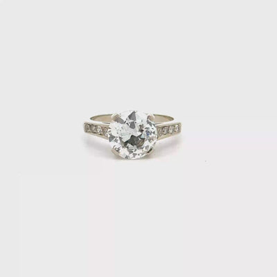 Elegant old European cut diamond engagement ring with round cut side stones set 18 karat white gold solitaire ring. This timeless piece showcases the classic beauty and sophistication of a solitaire design, perfect for a fabulous engagement ring.