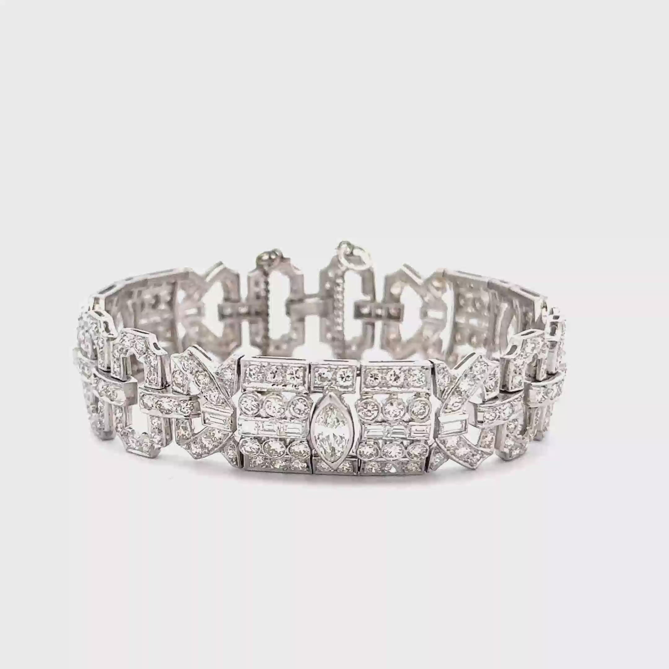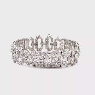 A forever part pillar of your jewelry collection. Experience timeless elegance with this exquisite platinum and diamond Art Deco bracelet. Each link is meticulously crafted to showcase brilliant-cut diamonds, their dazzling sparkle enhanced by impeccable symmetry and polish. A testament to sophisticated style, this bracelet is a radiant addition to any jewelry collection.
