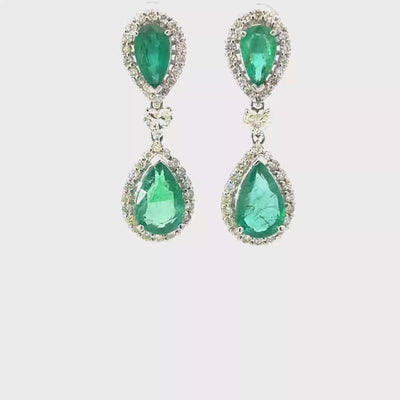 These stunning emerald drop earrings are the perfect accessory for any occasion. Crafted with exquisite detail, each earring features a vibrant green emerald surrounded by sparkling diamond halos, creating a luxurious look that will turn heads. Elevate your jewelry collection with this timeless piece that embodies elegance and sophistication.