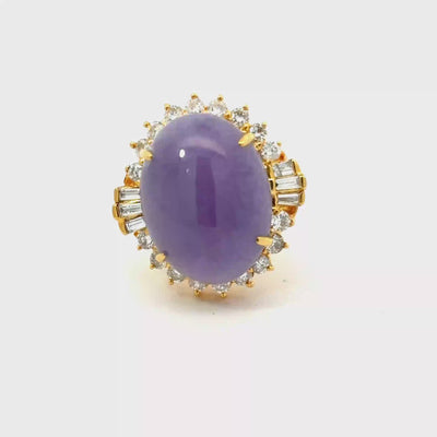 18 KARAT YELLOW GOLD LAVENDER JADE AND DIAMOND COCKTAIL RING