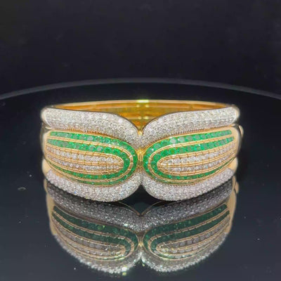 18 KARAT YELLOW GOLD DIAMOND AND EMERALD BRACELET